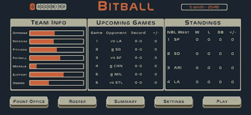 Dykk ned i den intense verdenen av Bitball League, hvor strategisk skarpsindighet og enestående lagledelse er nøkkelen til suksess. Dette er din sjanse til å ta kommandoen over et elite Bitball-lag, forme talentfulle spillere og utfordre ligaens aller beste på veien mot den ultimate triumfen. Fra det øyeblikket du tar roret, er målet klart: bygge en uovervinnelig tropp som kan dominere banen og skrive seg inn i historiebøkene.