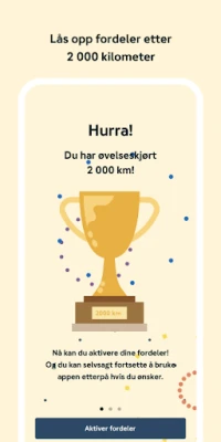 Med Øvelseskjøring er det enkelt å logge dine timer og kilometer. Enkelt trykk for å starte og pause turen, og la appen automatisk registrere distanse og tid. Hver økt avsluttes med en digital signatur fra din ledsager, noe som sikrer at all dokumentasjon er korrekt og gyldig. Når du når 2000-kilometersmerket, sender du enkelt inn en sluttrapport via appen. Dette utløser umiddelbart attraktive fordeler: som fersk sjåfør kan du se frem til hele 70 % startbonus på din første bilforsikring hos Gjensidige. I tillegg kan de som låner bort bilen sin til deg, beholde sin "over 23 år"-rabatt, selv om du er yngre enn dette.