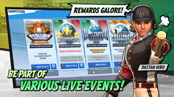 Er du klar for den ultimate testen? I Homerun Clash venter et mylder av konkurransedyktige moduser. Mål krefter i intense 1-mot-1-kamper, overlev kaoset i en Battle Royale med fire spillere, eller samle klanen din for å kjempe om ære og belønninger i Klan-kamper. Gå for gull i globale turneringer, Verdensmesterskapet som tar deg til ikoniske arenaer over hele kloden, eller den storslåtte Verdensutfordringen hvor hundre spillere kjemper til det bitre slutt. Bli med på den uendelige spenningen i Homerun Clash, der kun de beste svingerne når toppen!