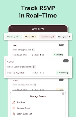 Lei av å sjonglere gjestelister, jage svar og designe invitasjoner hver for seg? Denne appen forenkler alt. Administrer eventer sømløst; fra planlegging til oppfølging, alt i ett kraftig verktøy.