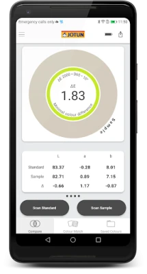 Med Jotun Colourpin får du full tilgang til hele spekteret av tilgjengelige Jotun-farger, rett i lommen. Du kan enkelt sammenligne farger side om side og til og med måle nøyaktige fargeforskjeller, noe som er uvurderlig for finjusteringer. Oppdag raskt eksisterende farger i et miljø for å sikre harmoni eller skape spennende kontraster. Få inspirasjon og selvtillit til å utforske nye fargekombinasjoner for ethvert rom eller objekt. Før du starter malearbeidet, anbefaler Jotun alltid å verifisere fargematchen med et fysisk fargeprøveverktøy eller utskrevet fargekart fra Jotun for optimalt resultat.
