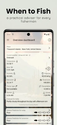 "When to Fish" er en praktisk veileder for fiskere som vet at fangsten ikke bare handler om flaks. Appen gir prognoser og forhold som hjelper deg finne de beste tidene og stedene for ferskvannsfiske. Din lomme-fiskeprognose, basert på vær, månefaser og mer.