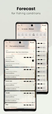 For alle som elsker spenningen ved fisking, vet man at timing er alt. Enten du jakter på karpe, gjedde, ørret, abbor, eller en av de mange andre ferskvannsartene, krever vellykket fiske mer enn bare flaks. Vår spesialutviklede løsning er din uunnværlige følgesvenn, designet for å dramatisk øke dine sjanser for en god fangst. Med detaljerte prognoser tilpasset over tjue forskjellige fiskearter – fra bass til ål, og crucianskarp til tilapia – gir denne appen deg den innsikten du trenger for å være på rett sted til rett tid. Den forutser ikke bare generelle fiskeforhold, men også den spesifikke aktiviteten for hver enkelt art.
